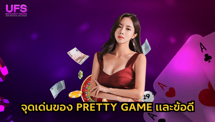 PRETTY GAME มีจุดเด่นหลายประการที่ทำให้เป็นที่นิยมในวงการเกมส์พนันออนไลน์ มีสาวสวยเป็นตัวแจกไพ่ในเกมสร้างประสบการณ์เล่นที่น่าสนใจและสนุกสนานมากขึ้น พร้อมกับมี มีโปรโมชั่นและรางวัลต่าง ๆ ให้กับผู้เล่นเพิ่มโอกาสในการชนะและทำกำไร และโลกอินเทอร์เน็ตเดี๋ยวทำให้ทุกอย่างสะดวกสบาย ผู้เล่นสามารถเล่น PRETTY GAME ผ่านอินเทอร์เน็ตได้ทุกที่ทุกเวลา เพิ่มความสะดวกสบายในการเล่น ข้อสำคัญอีกหนึ่งอย่างที่เป็นสิ่งที่ดีที่สุดคือ บางเกม PRETTY GAME มีความเสี่ยงน้อยในการเล่น ทำให้มีโอกาสทำกำไรได้มากขึ้น แต่คุณต้องหาเกมส์นั้นเอาเอง เราแค่บอกเป็นในๆให้